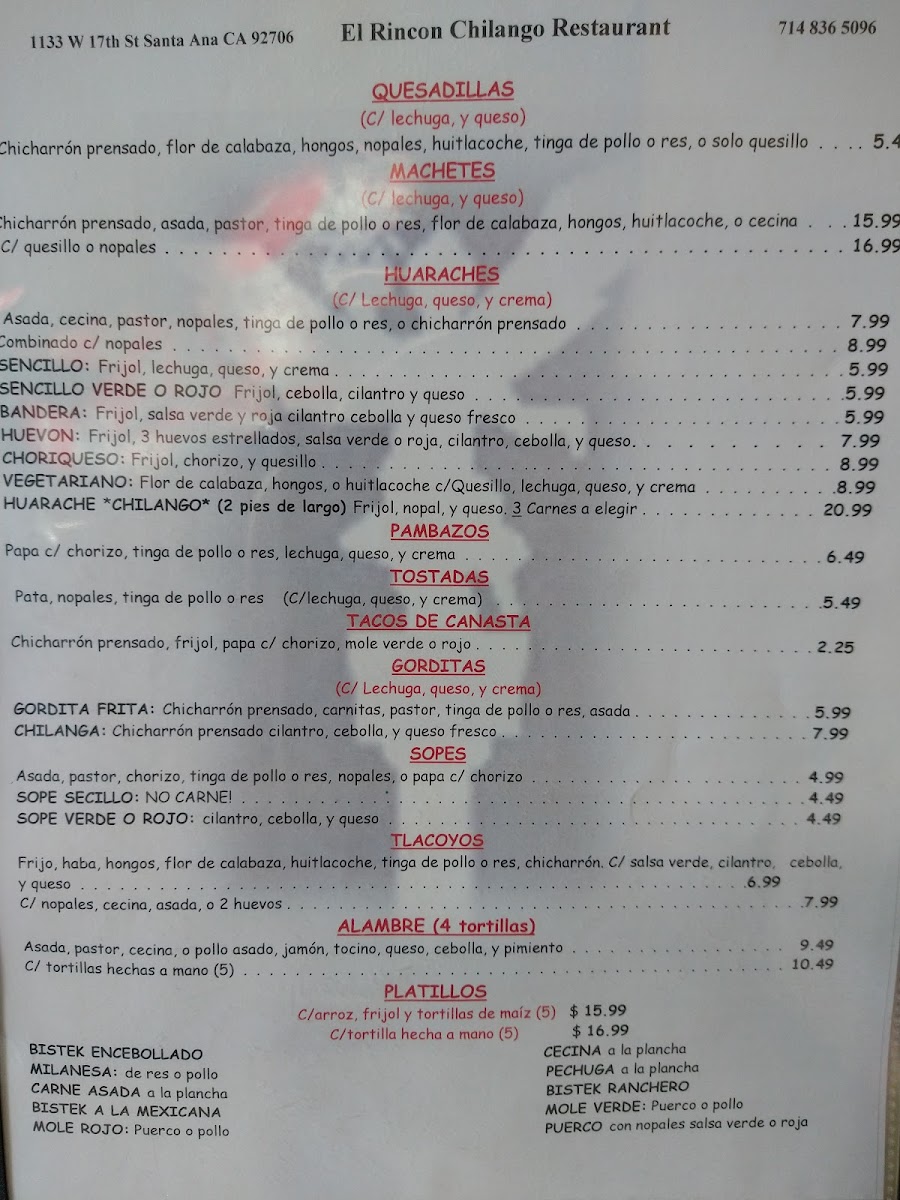 Welcome to El Rincon Chilango, an authentic Mexican restaurant nestled in Santa Ana, CA. This charming eatery is renowned for its vibrant flavors and welcoming atmosphere, making it a top choice for both locals and visitors alike. The menu showcases traditional dishes that highlight the rich culinary heritage of Mexico, with standout items such as the chicharron quesadilla, praised for its gooey cheese and robust flavors.